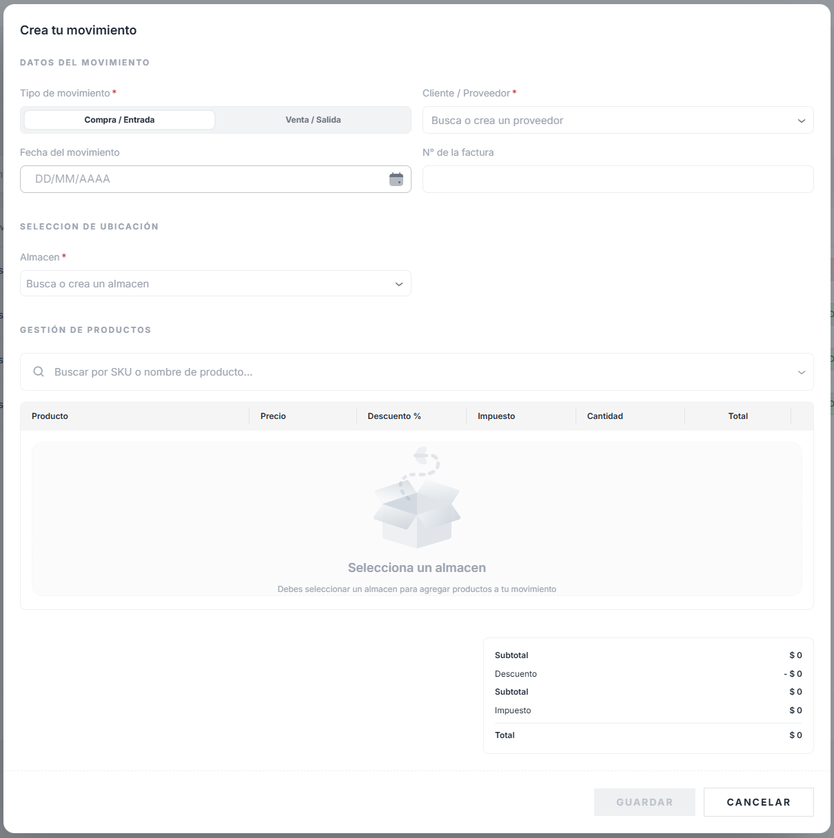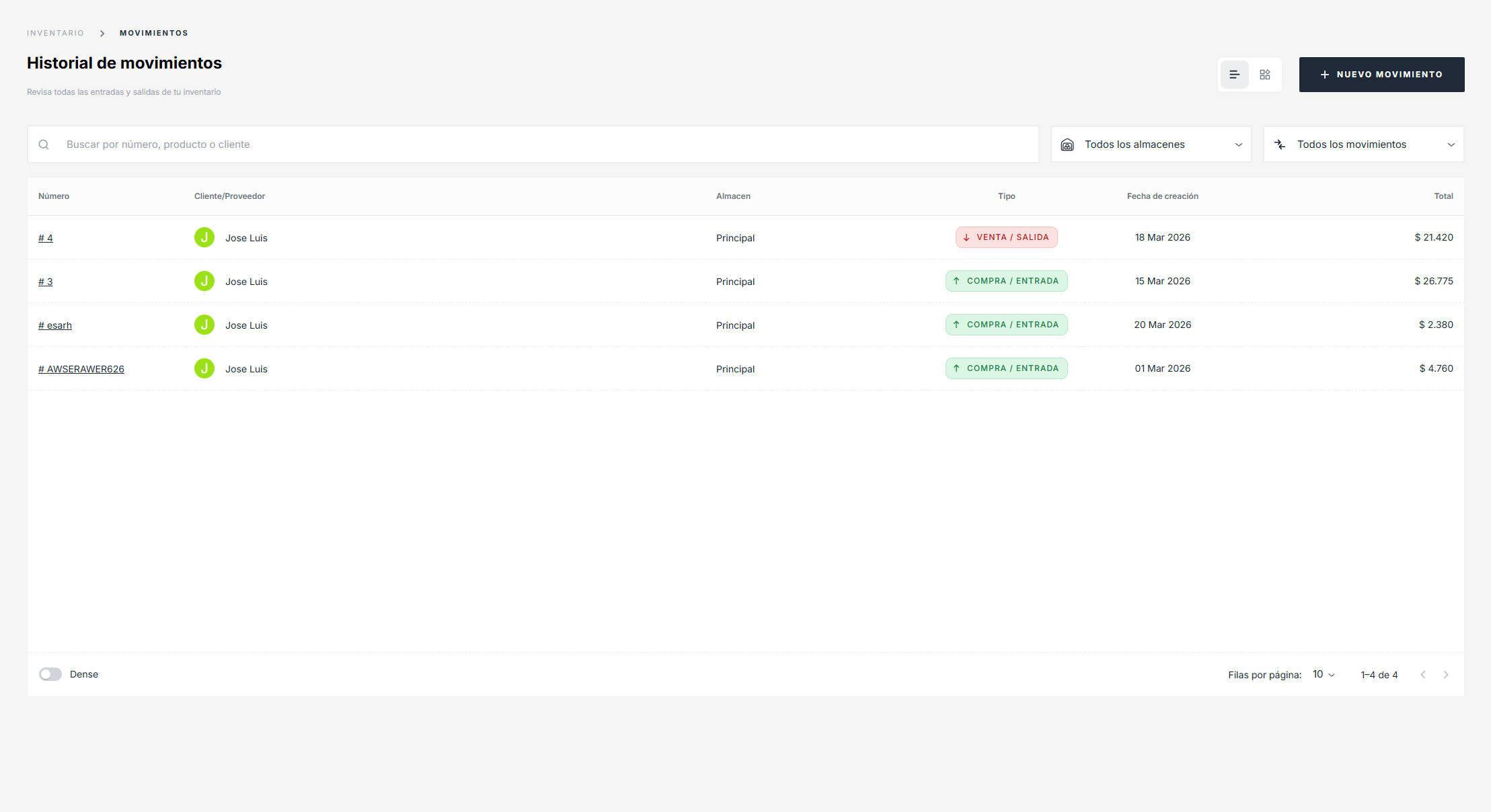 Movimientos de Stock Dinámicos